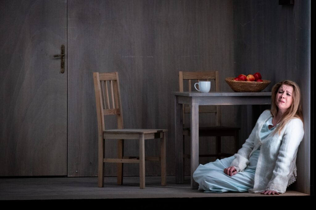 In fear of disgrace Kostelnička hides Jenůfa in her home and claims to everybody that she has left for Vienna. In the meantime Jenůfa has given birth to a son. Whilst Jenůfa is sleeping, Kostelnička humbles herself before Števa and begs him to marry Jenůfa. For Števa, however, Jenůfa’s scarred face has rendered her ugly and besides, he is already engaged to the daughter of the Mayor. Laca arrives and asks Kostelnička to hand over Jenůfa to him. When Kostelnička gives away the secret to him that Jenůfa had given birth to Števa’s child, he is shocked. Seeing his doubts, Kostelnička in desperation lies that the child had died immediately aft er the birth. As soon as Laca leaves, Kostelnička drowns the child in an icy river and convinces Jenůfa that she had slept for several days in a fever and the little boy had died in the meantime. The devastated Jenůfa agrees to a marriage with Laco.